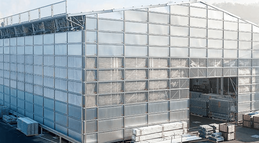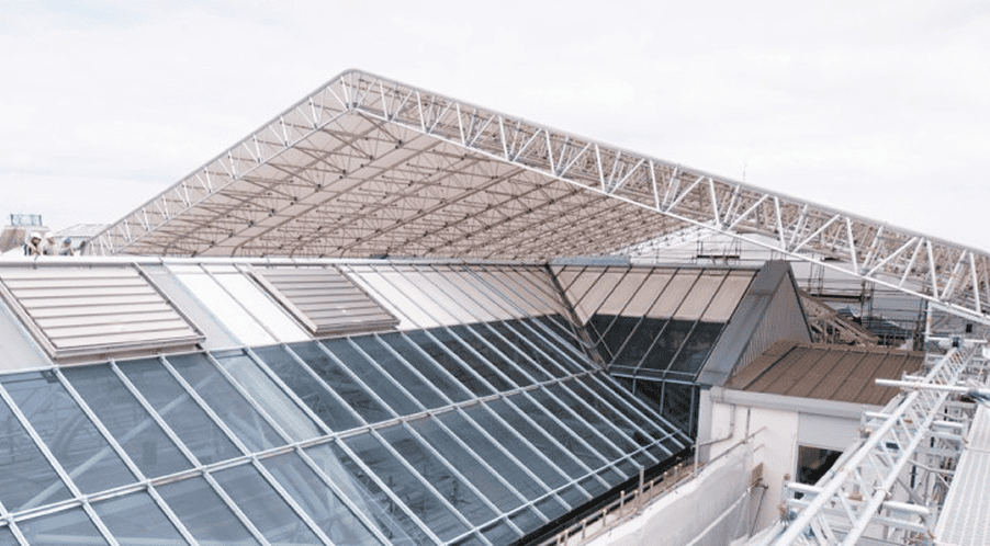 Металлические кассетные крыши Layher представляют собой стальной фермовый каркас с прочными и крепкими стальными кассетами.
