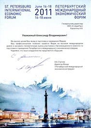 Мы высоко ценим Ваш вклад в подготовку и проведение Форума! Ваш профессионализм позволил провести Форум на высоком международном уровне и заслужить положительную оценку участников и Организаторов комитета по подготовке и проведению Петербургского международного экономического форума.