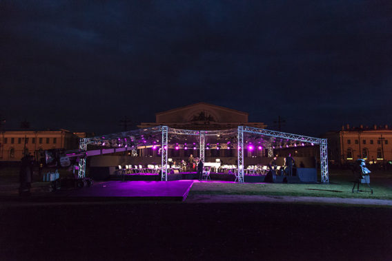 Компания StagePro оказала техническую поддержку мероприятию, предоставив комплекс услуг и необходимое сценическое оборудование для разных площадок проекта. На Биржевой площади была установлена сцена оригинальной конфигурации для выступления оркестра. Для проведения свето-пиротехнического шоу в акватории Невы была проведена масштабная застройка, включая пультовую мультимедийного шоу на дебаркадере на Неве. Были установлены звуковые башни и подиумы, подиумы под пиротехнику и световое оборудование. Для видеотрансляции 5 канала StagePro предоставила подиумы и станки под тв-камеры. Для ограждения зоны проведения мероприятия и обеспечения безопасности StagePro предоставила ограждения: заборы, фан барьеры и тяжелые ограждения.